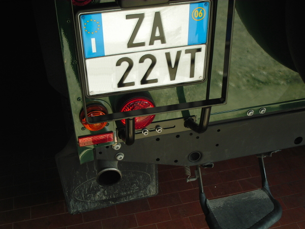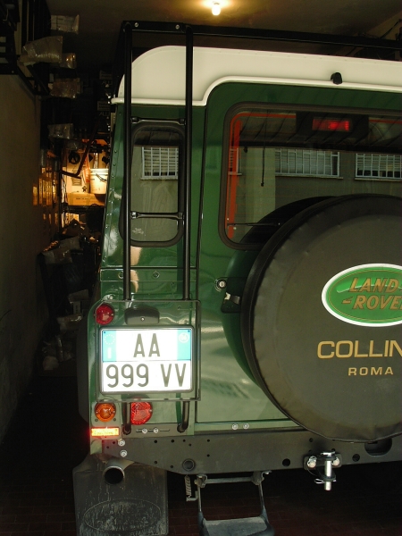 La scaletta viene fornita solo con riquadro per targa ed è disegnata per essere compatibile con tutti i modelli di Defender e Land Rover 90/110 Station Wagon. Non è possibile il montaggio su carrozzeria "Pick-Up" e "Crew-Cab".