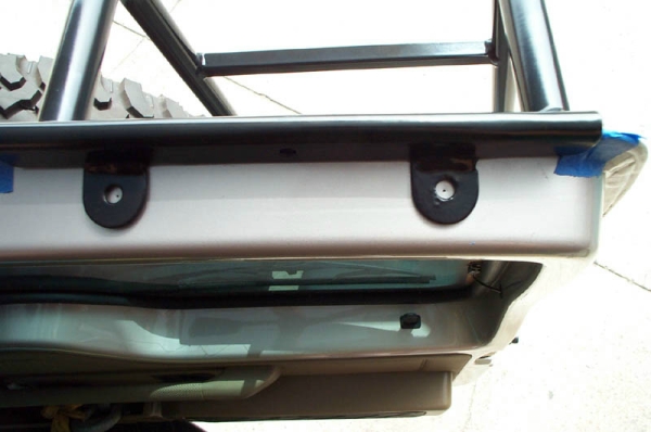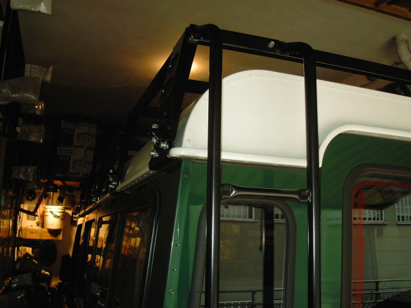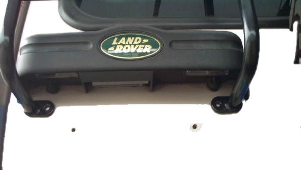 Sul lato inferiore si utilizzano i due bulloni di fissaggio telaio/carrozzeria presenti su tutti i Defender. Non si deve forare alcun punto della carrozzeria. La scaletta aumenta la resistenza del portapacchi e garantisce protezione all'angolo posteriore del fuoristrada. Mediante le asole inferiori è possibile il montaggio sul lato guida (consigliato) o lato passeggero.