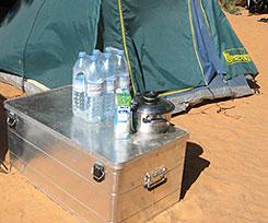 ZARGES voto 9 Le casse stagne in alluminio sono le più leggere e le più adatte allo stivaggio delle diverse attrezzature, perfette per la cucina per la loro maggior resistenza al calore rispetto a legno o plastica. Facili da aprire anche se affiancate tra loro, dovrebbero sostituire la maggior parte degli involucri nelle spedizioni sahariane. Scomode da usare per viaggi senza il 4x4. Per il resto sono solo pregi: durata eterna, resistenza al calore, all'acqua, leggere e stagne. Gli usi possono essere diversi: si possono usare per riparo nei falò, come sedile, come tavolo, come vasca per lavare i pezzi meccanici, come catino, come pentola per scaldare l'acqua per il bagno serale, per contenere materiali oleosi o sgradevoli. Adatte all'impiego interno o esterno nei veicoli fuoristrada